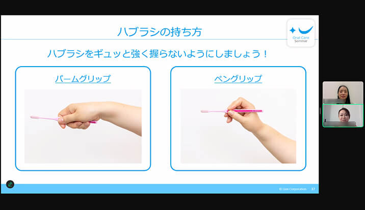 セミナーで学んだケアに関する知識を実践・継続してもらえるように、セミナー内容に合わせたオーラルケアグッズを配布しました。身近なテーマであることに加え、グッズ配布が参加意欲を高め、これまでの健康関連のセミナーよりも多くの参加申込がありました。